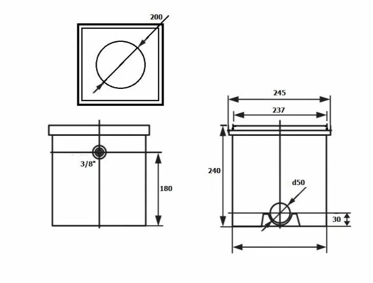 | Підключення | 50 мм x 3/8" |