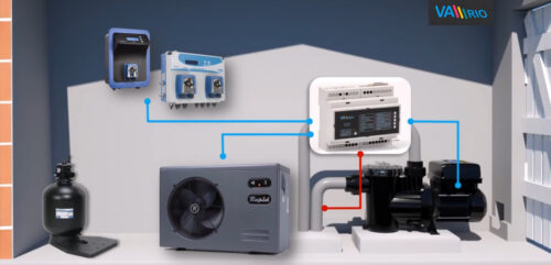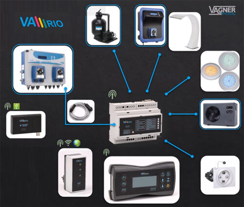 Система містить модуль DIN VArio, завдяки якому можна контролювати роботу всіх ланок обладнання басейну та керувати ними зі смартфона, планшета чи персонального комп’ютера через інтернет, локальну мережу WiFi або за допомогою бездротового пульта дистанційного керування.