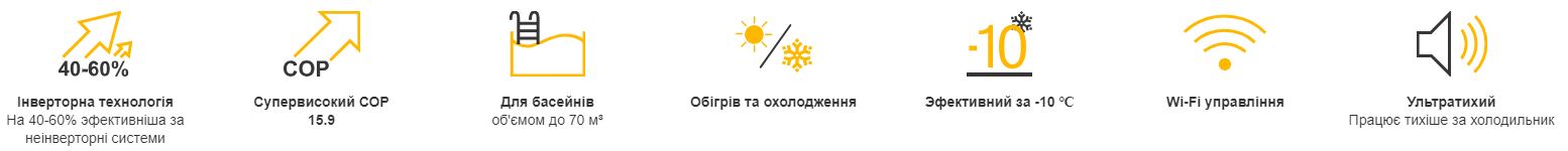 - Коефіцієнт продуктивності: 6.5 - 16.2