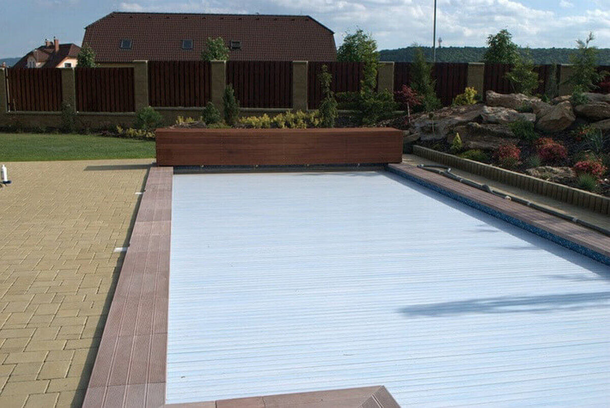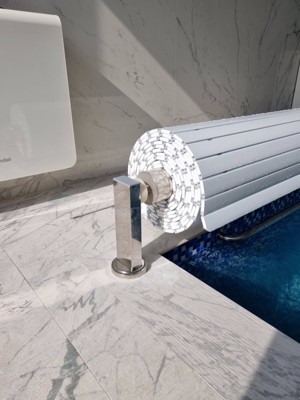 Ролетне накриття монтується в окремій ніші за стіною басейну. Найкраща система для вуличних басейнів.