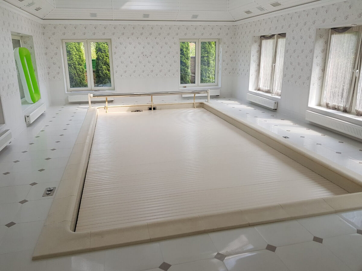 Ролетне покриття монтується в ніші на дні басейну та закривається автоматичною захисною кришкою.