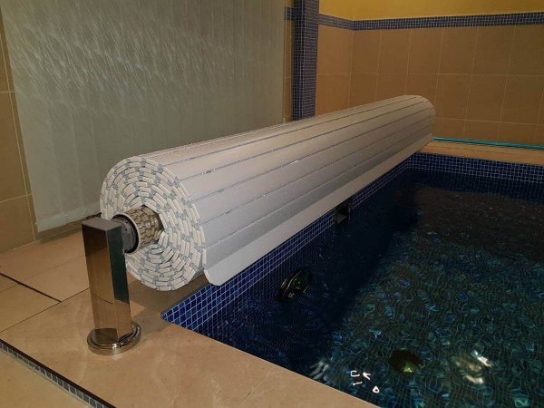 Ролетне покриття монтується у ніші торцевої стіни басейну. Може закриватися захисною кришкою.
