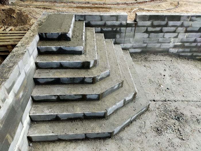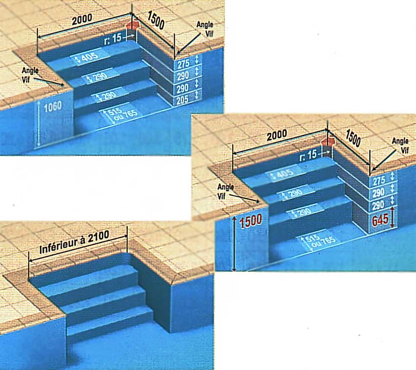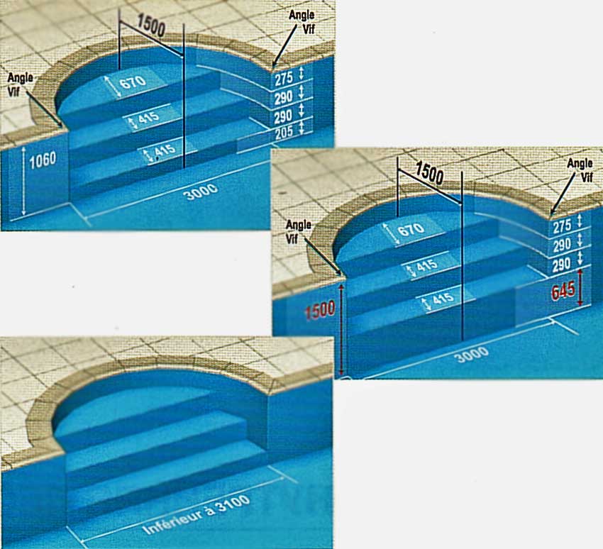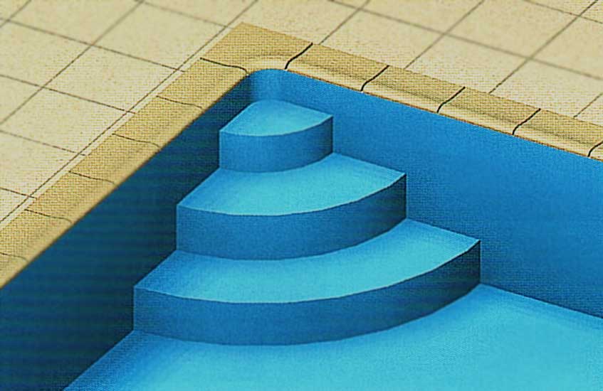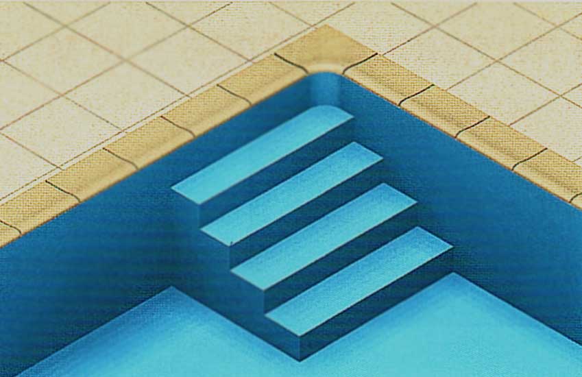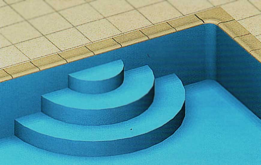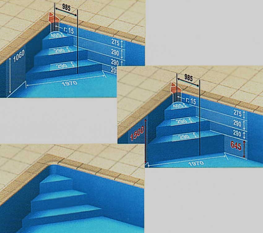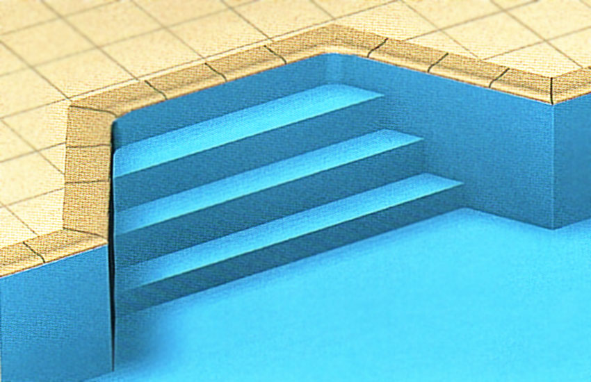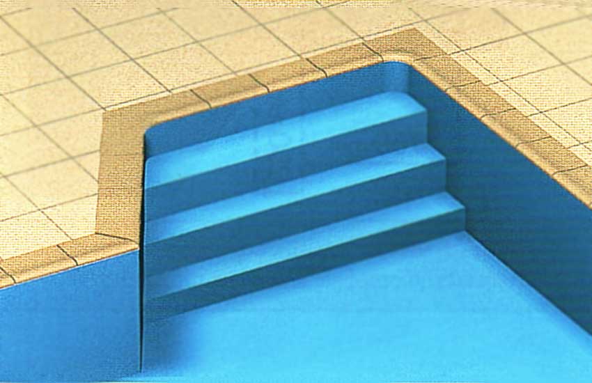 Перший підступок повинен бути не менше 275 мм заввишки для того, щоб зчеплення лайнера з поверхнею сходів посилилося за рахунок тиску води.