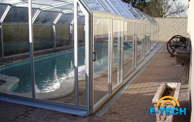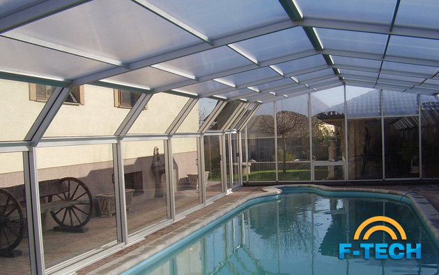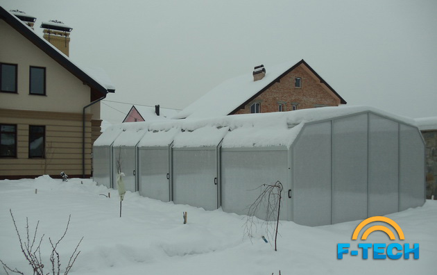 - передні і задні знімні чола з алюмінієвих профілів, які зовні покриті елоксом («elox» - електро-хімічна поверхнева обробка). Вони виповнені однокомірковими полікарбонатними листами з матовими відтінками. Листи на внутрішній стороні покриті шаром NO DROP, який істотно знижує конденсацію у вигляді крапель.