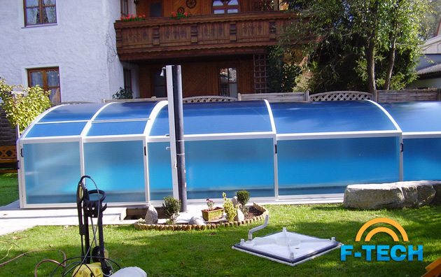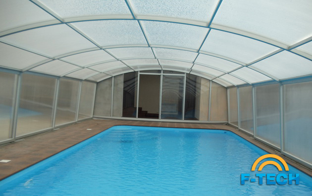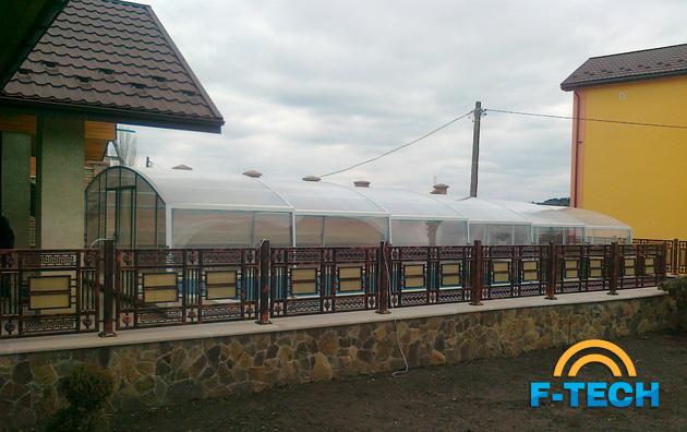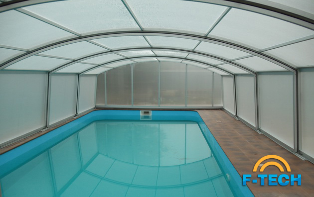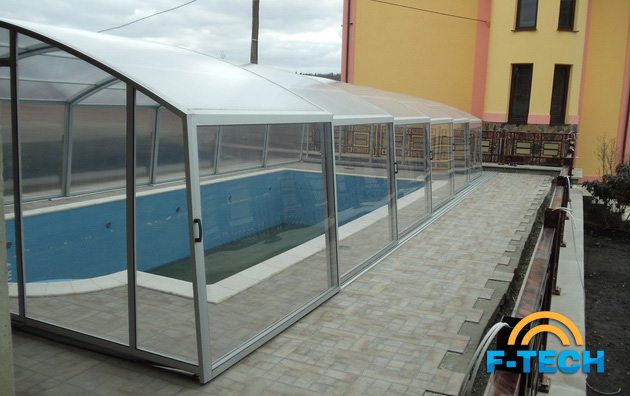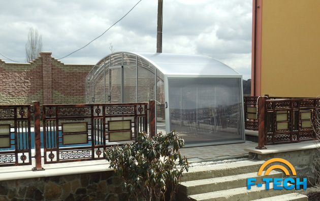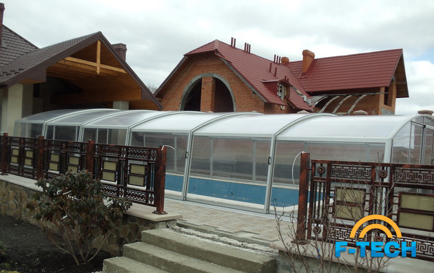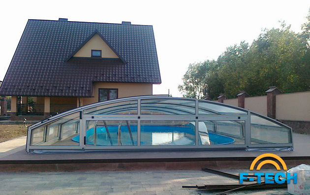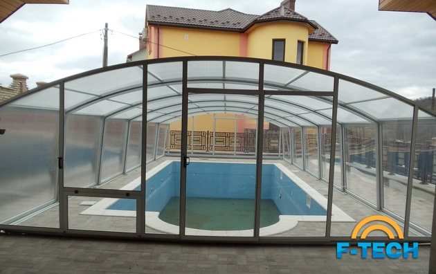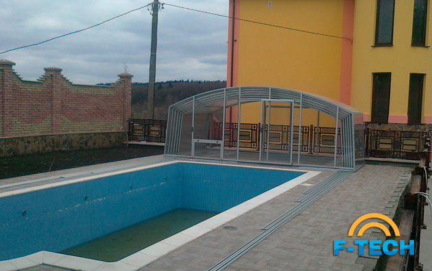 Дуговий павільйон з косими стінками. Найнижчий павільйон на басейн, який ми пропонуємо. Елегантне вирішення для вимогливого замовника.
