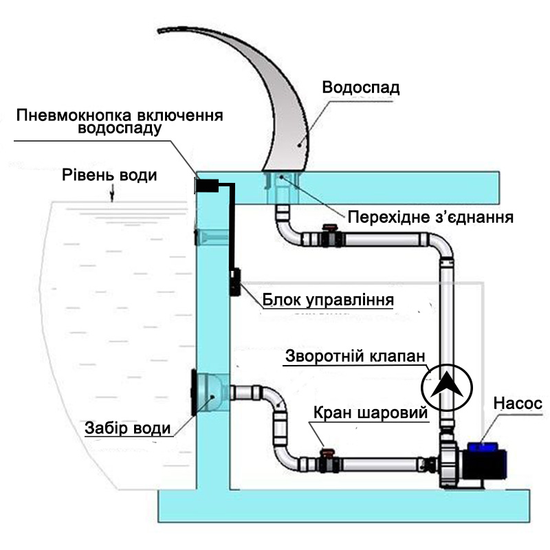 Система водопада состоит из набора оборудования и материалов, куда входят: