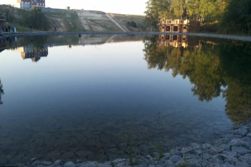 - Закріплення країв штучного покриття. По периметру резервуару краї мембрани ховаються у траншеї та закопуються. За бажанням замовника прикрашаються натуральним каменем, скріпленим бетонним розчином.