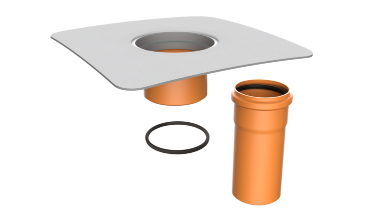 Надставка TOPWET з інтегрованою втулкою з гідроізоляційної плівки на основі ПВХ для вертикального оформлення терасових стоків DN 70, 100, 125 з ущільнювальним кільцем. Насадка поставляється без захисного кошика, з подовжувачем.