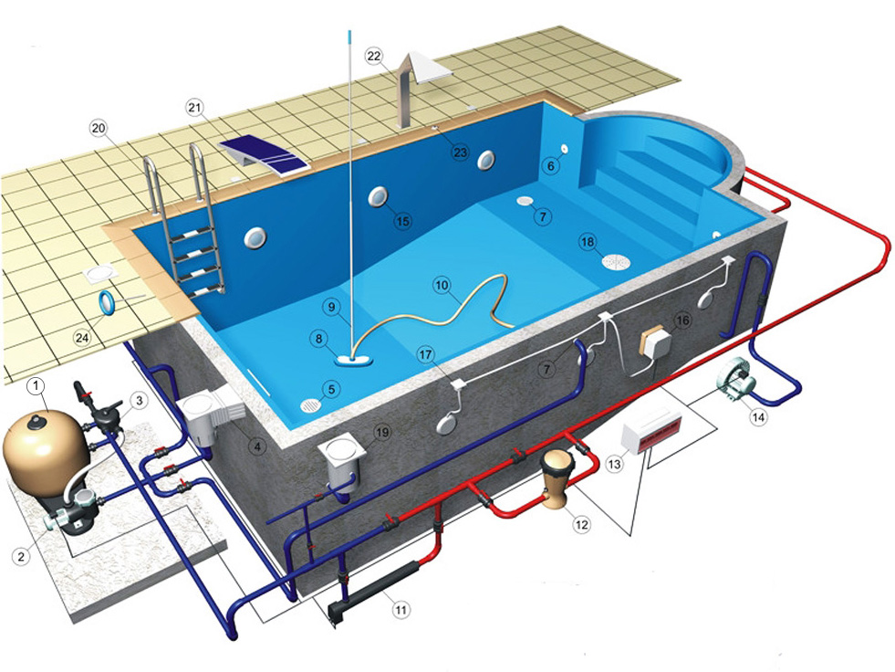 Як влаштований скімерний басейн з використанням пісочного фільтра