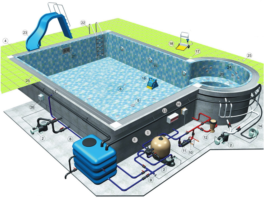 Як влаштований переливний басейн з використанням пісочного фільтра